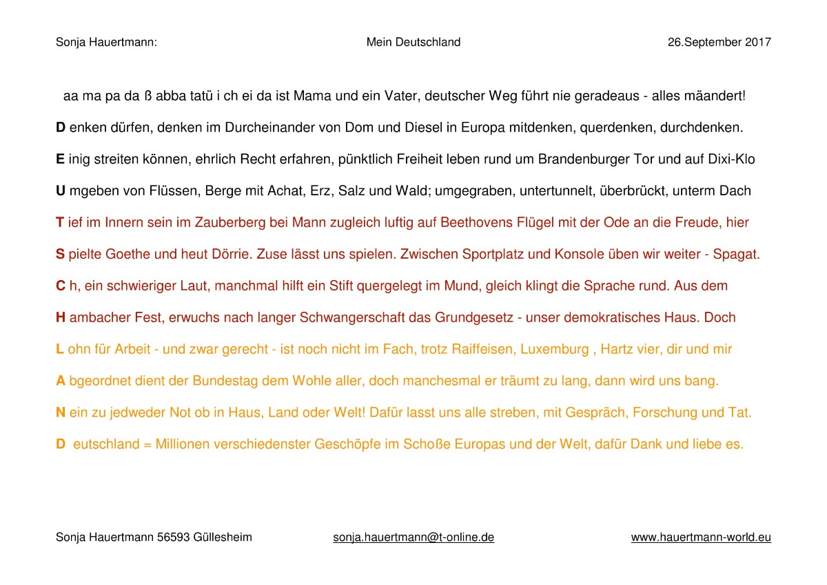 So entwickeln sich immer neue Texte und Bilder bei mir, als auch bei Zuhörern und Lesern.